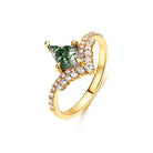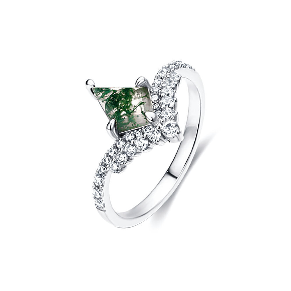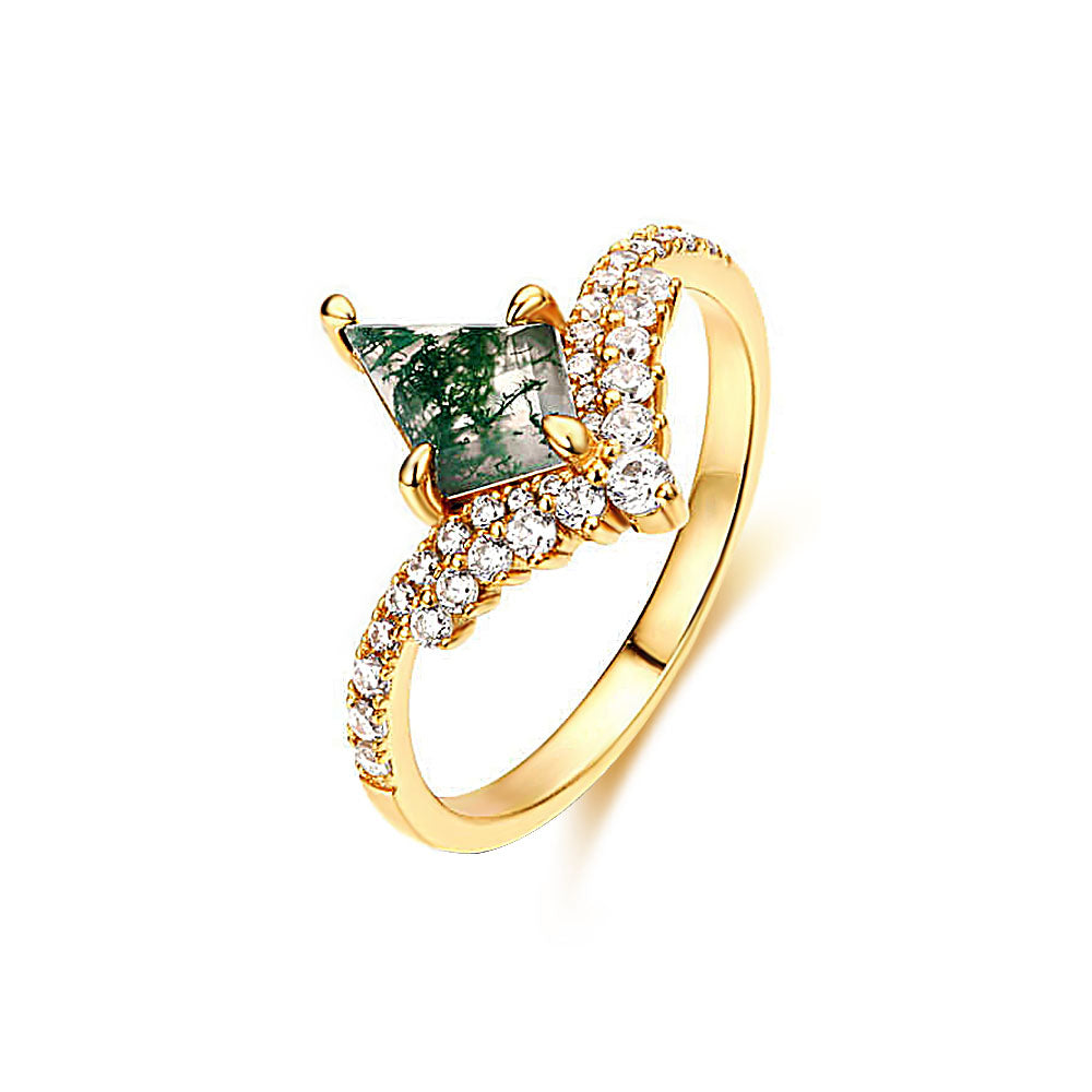 Kubieke Zirconia Rhombus Vorm Aquatische Groene Mosagaat Ring