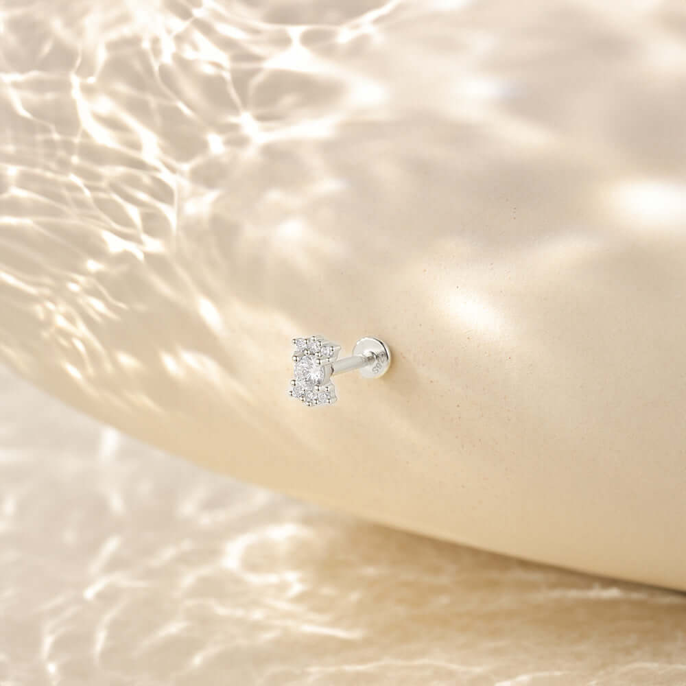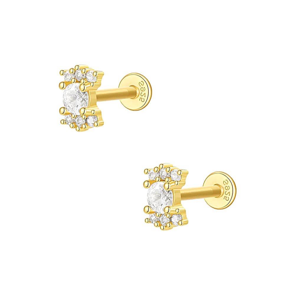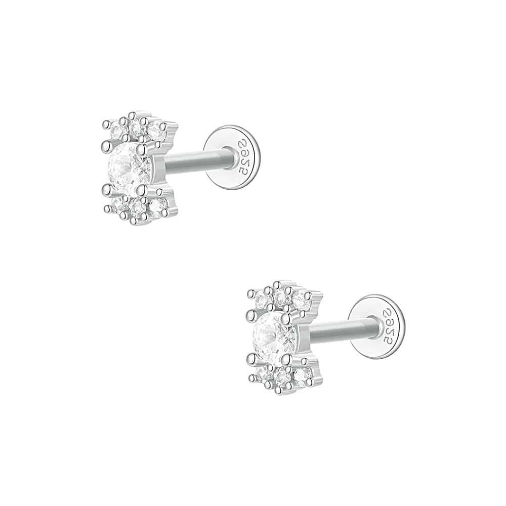 925 Silver Candy Shape CZ Diamond Flat Back Earrings