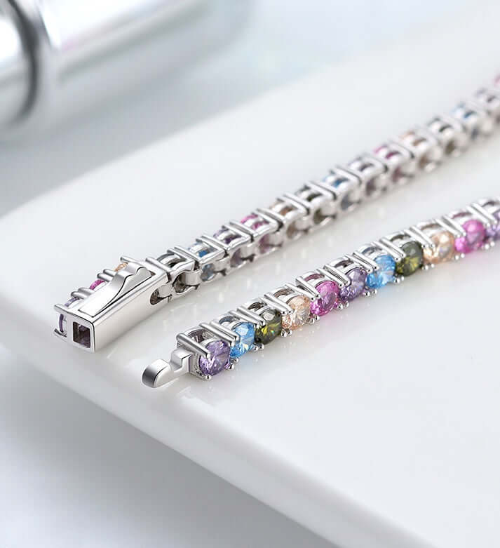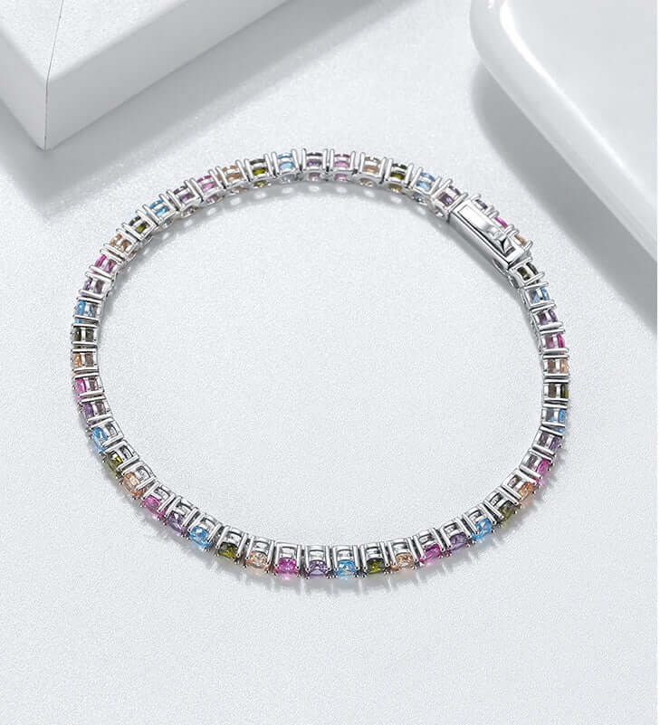 Complete your outfit with this vibrant 925 silver all-inclusive tennis bracelet. Dazzle with every move thanks to its colorful design. Perfect for adding a touch of playful elegance to any look. No need to worry about matching, this bracelet has it all covered!