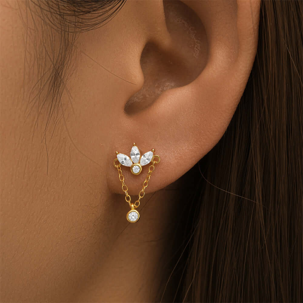Indulge in these exquisite 925 Silver Crown Top Round Pendant CZ Diamond Flat Back Earrings. Crafted with precision, these earrings are a perfect blend of elegance and sophistication. Adorned with sparkling CZ diamonds and a unique crown design, they add a touch of royalty to any outfit. Elevate your style with these stunning earrings! Make a statement with these stunning earrings! The intricate crown design and sparkling CZ diamonds add a touch of luxurious elegance to any outfit. Handcrafted with precision, they are a perfect blend of sophistication and style. Embrace your inner royalty and elevate your look with these exquisite 925 Silver Crown Top Round Pendant CZ Diamond Flat Back Earrings.