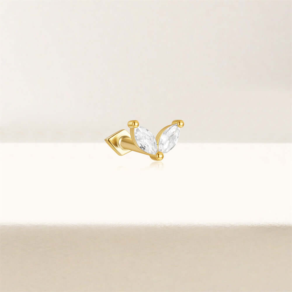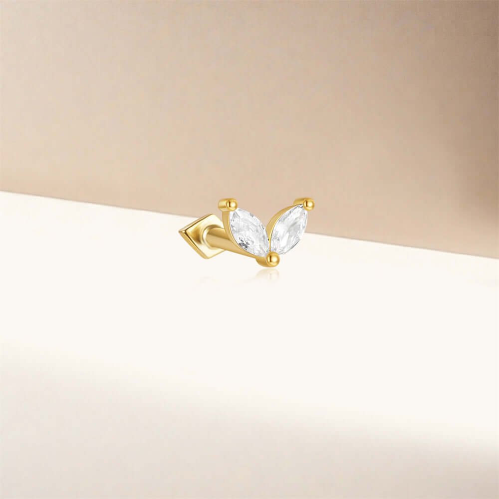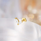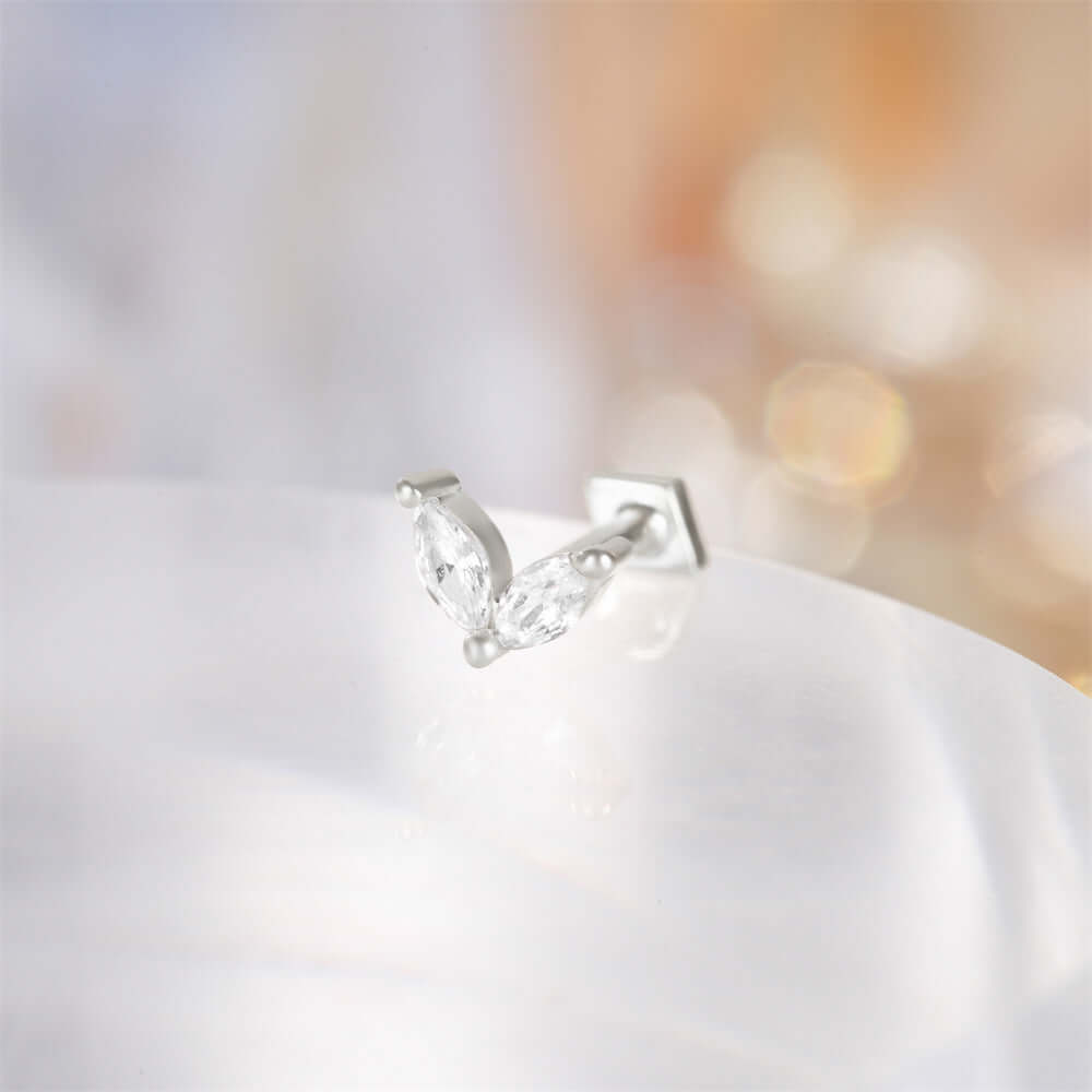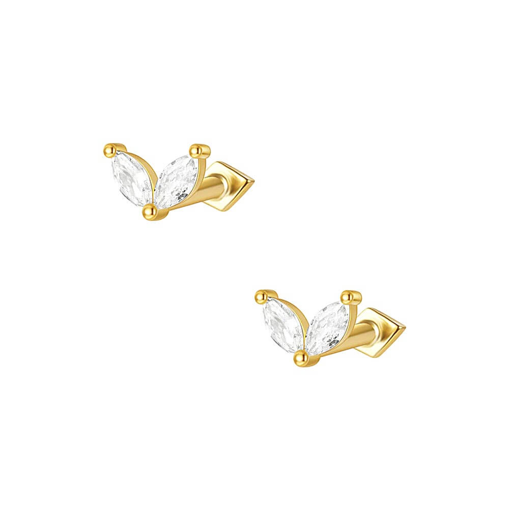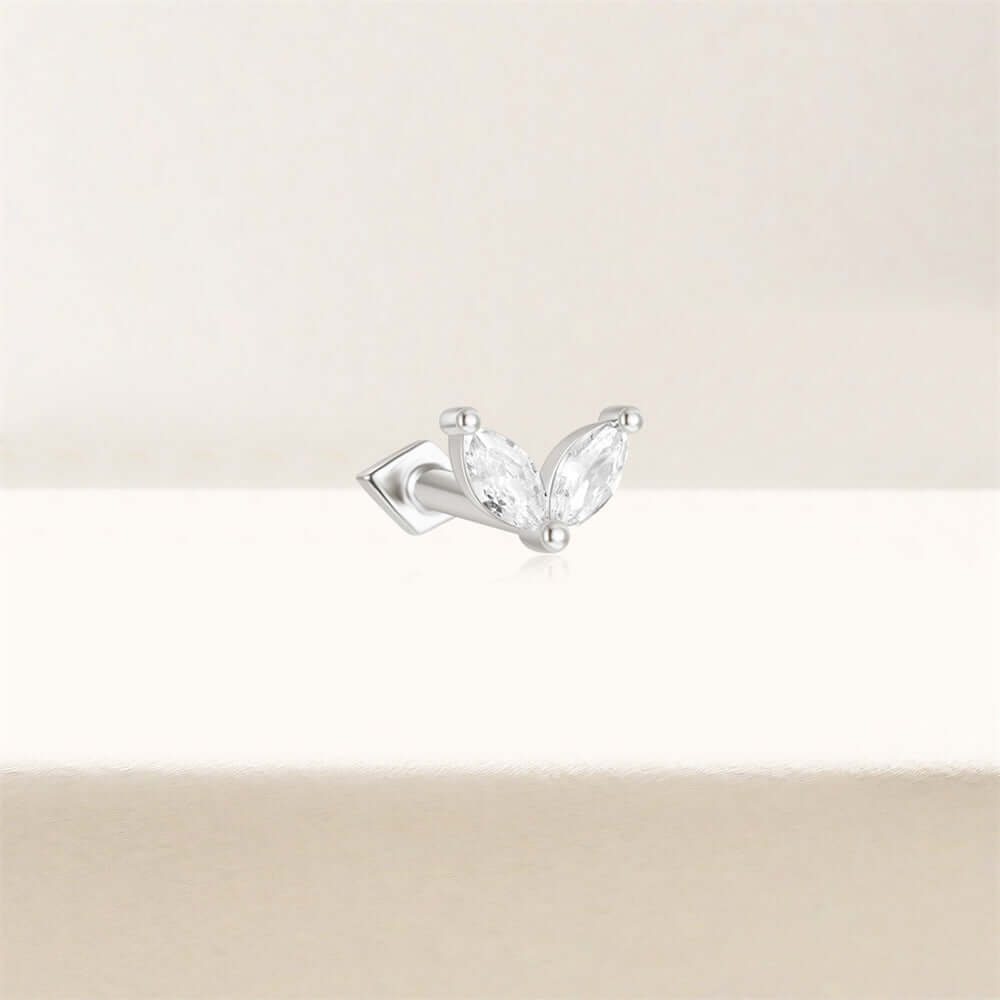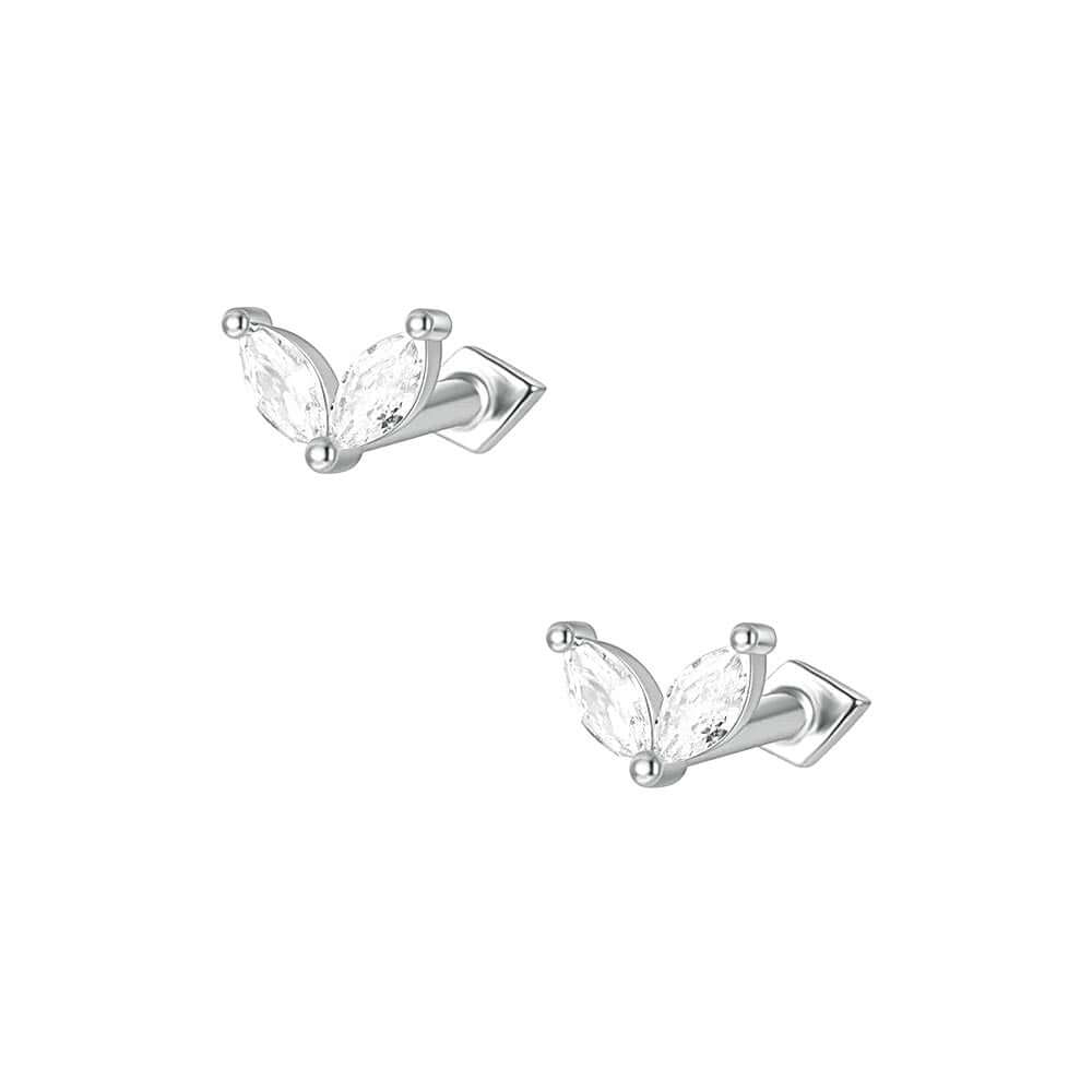 925 Silver Double Leaf Square CZ Diamond Front And Back Earring