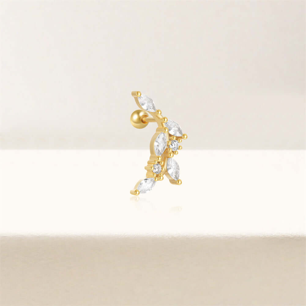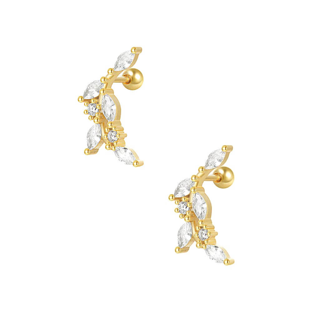 925 Silver Leaf CZ Diamond Ball Back Earrings
