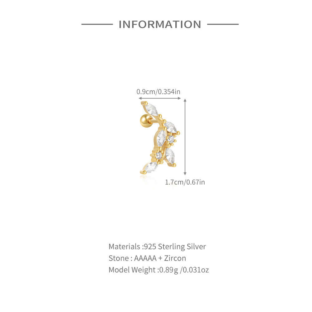 These stunning 925 silver leaf earrings feature sparkling cubic zirconia diamonds and a unique ball back design. Crafted with high-quality materials, these earrings are the perfect blend of elegance and fashion. Elevate any outfit with these timeless earrings.