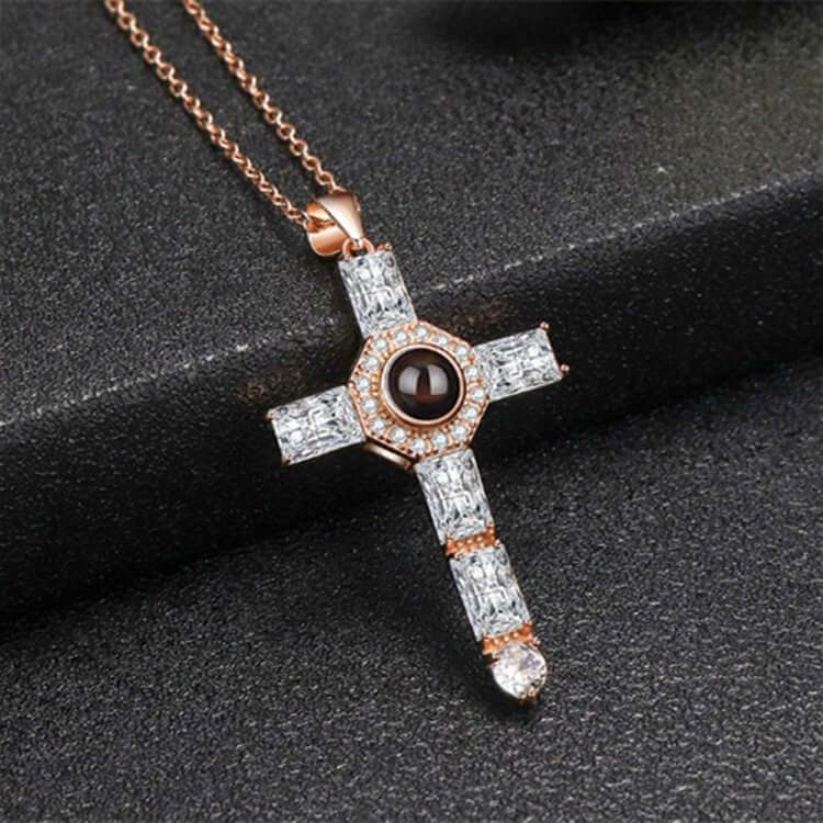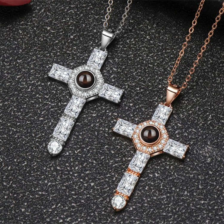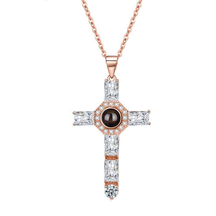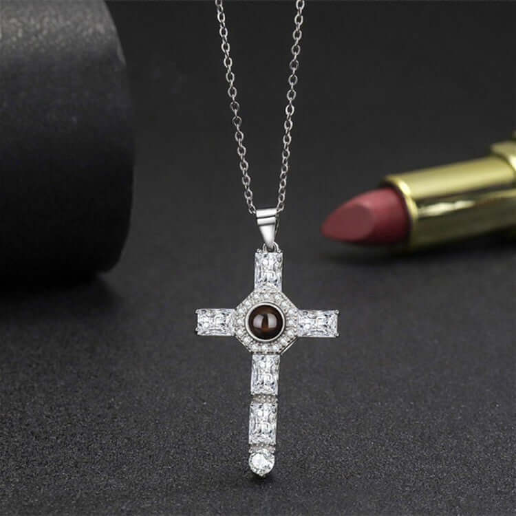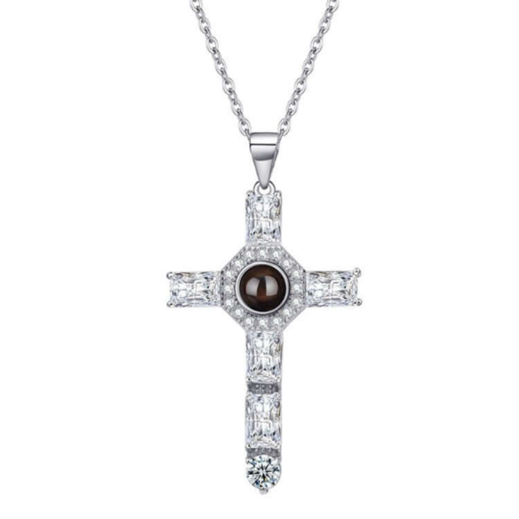 Cubic Zirconia Diamond Cross Pendant with Picture Inside
