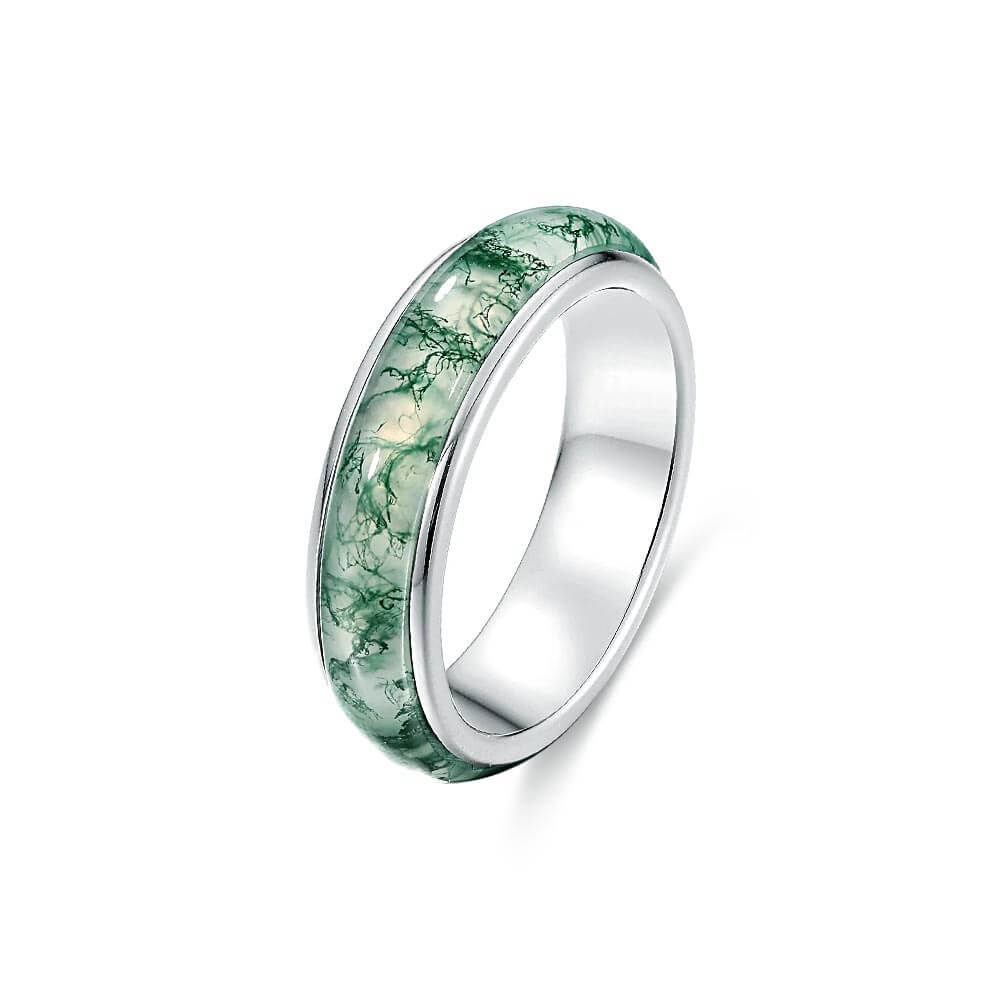Wrap your finger in earthy vibes with our Fully Surrounded Moss Agate Ring. This unique piece features a fully surrounded natural moss agate stone, bringing a touch of nature to your style. Let this playful and quirky ring be a conversation starter for your next outing.