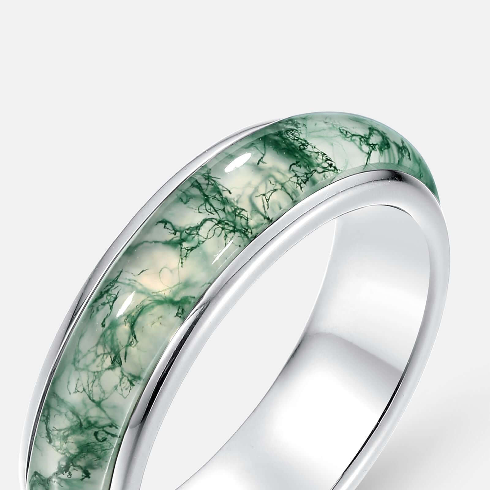 Fully Surrounded Moss Agate Ring
