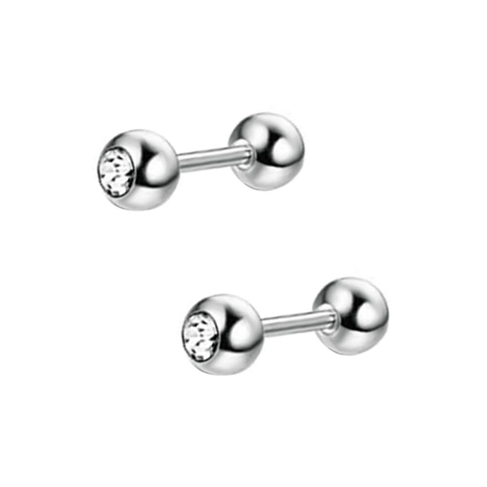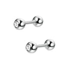 Stainless Steel Double Ball Single Inlay CZ Diamond Ball Bottom Earrings