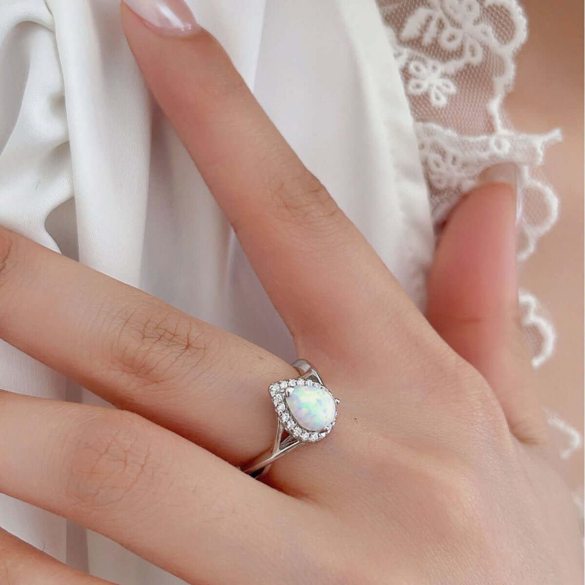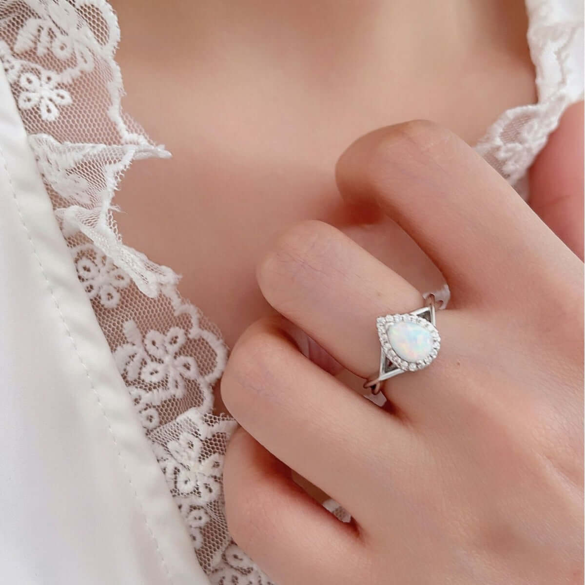 Teardrop Lab-Created Opal 925 Sterling Silver Ring