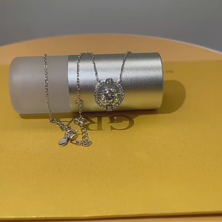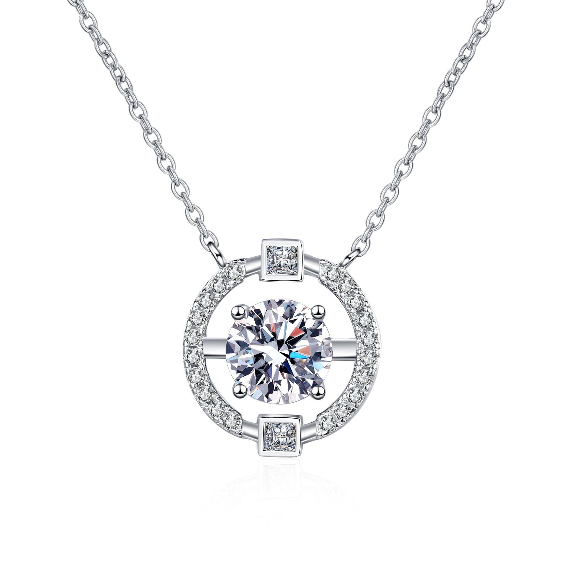 Ten srebrny naszyjnik ma lśniący klejnot Moissanite osadzony w środku. Jej gwiaździsty połysk i brylantowy szlif zapewniają ponadczasowy wygląd i sprawiają, że jest idealnym dodatkiem do każdej kolekcji biżuterii.