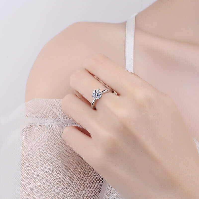 Ponadczasowa biżuteria, ten klasyczny prosty pierścionek moissanite jest idealnym dodatkiem do kolekcji biżuterii każdej kobiety. Piękny kamień moissanitowy z pewnością będzie błyszczał i olśniewał przez wiele lat.