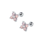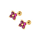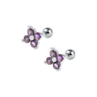 Curate your perfect ear with the addition of the Dainty Clover Barbell Earring, a tiny 4-gem stud earring available in pink, purple, navy, or red.
