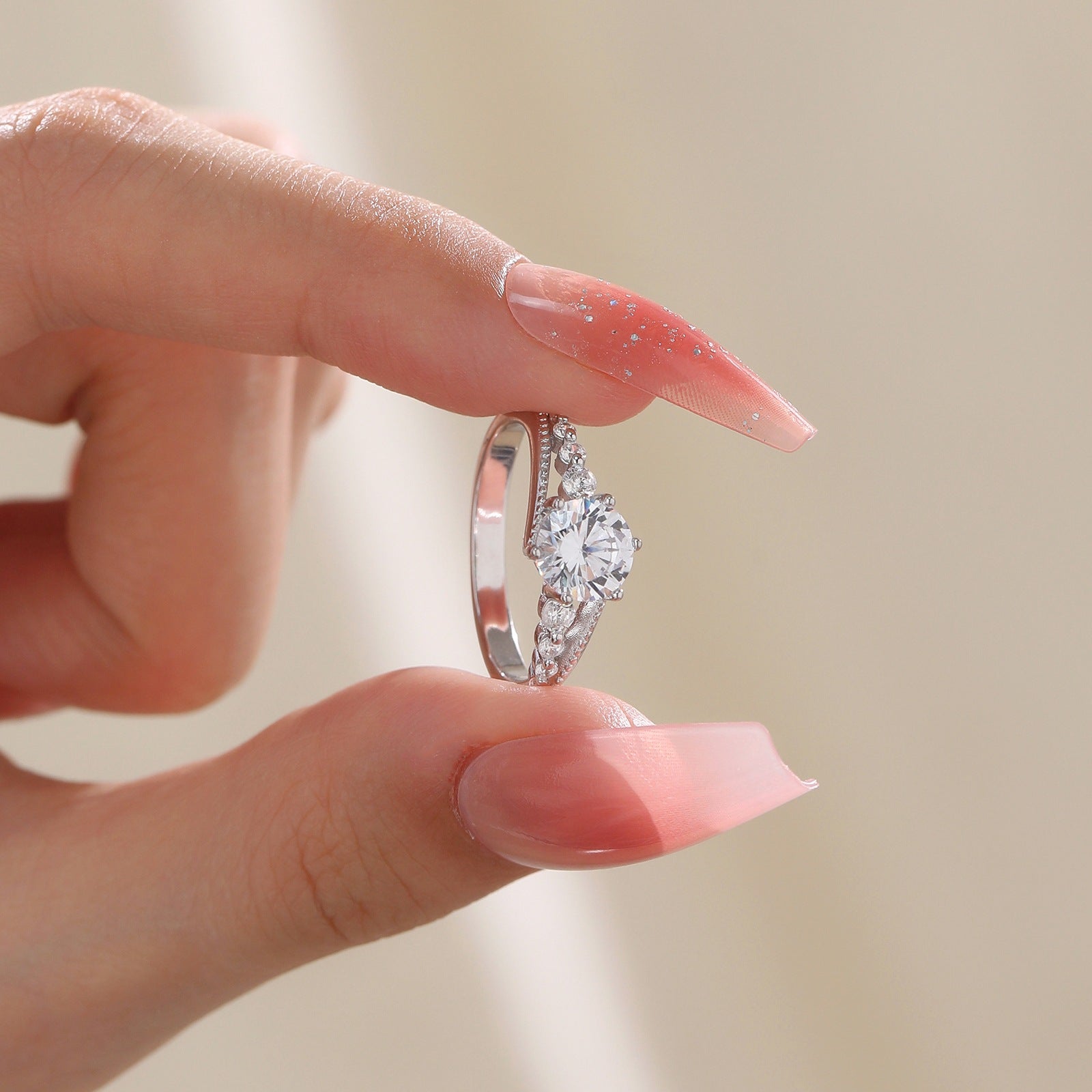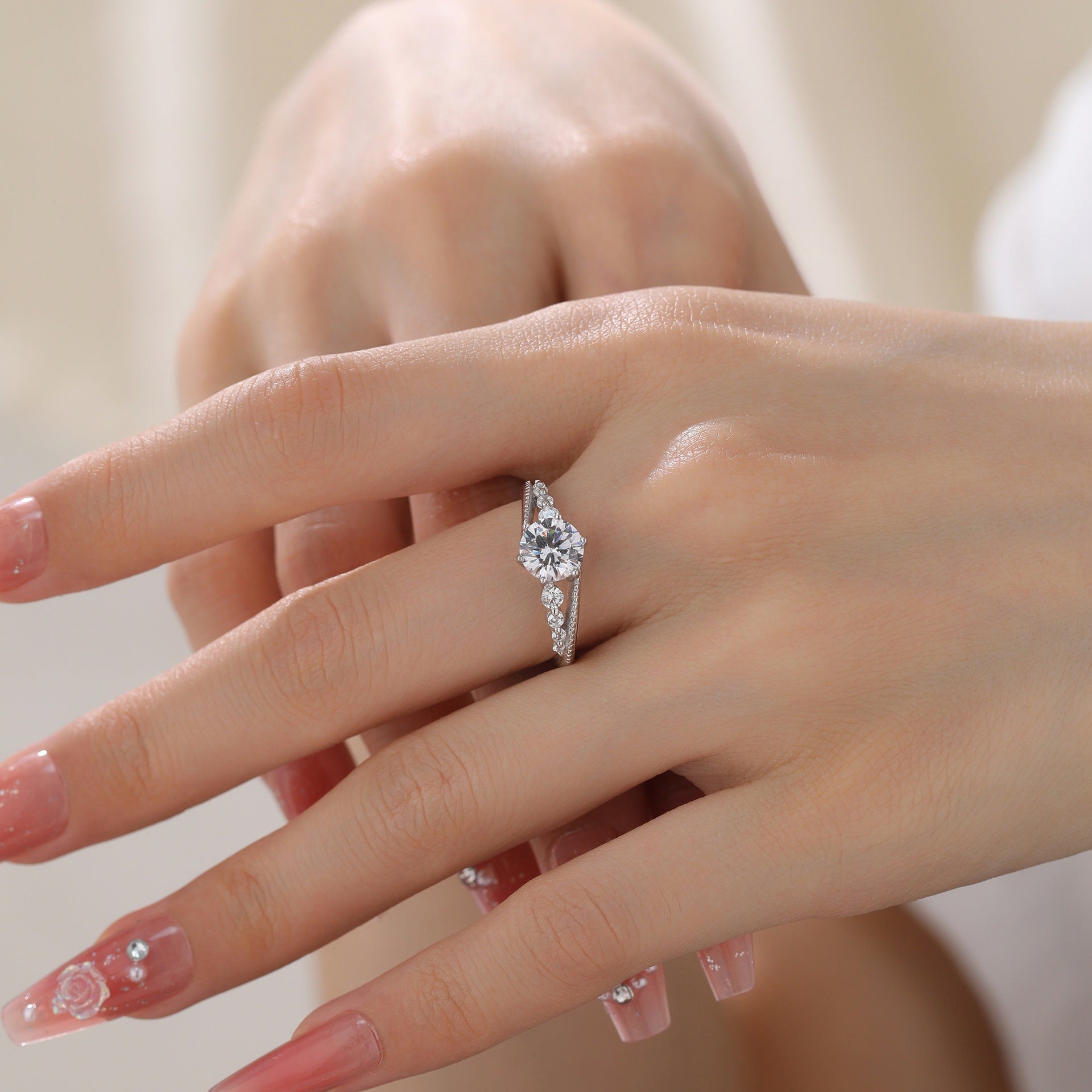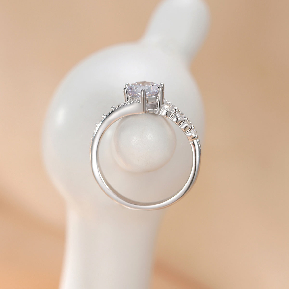 925 Silver Round Size Varying Moissanite Ring
