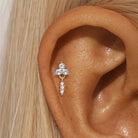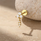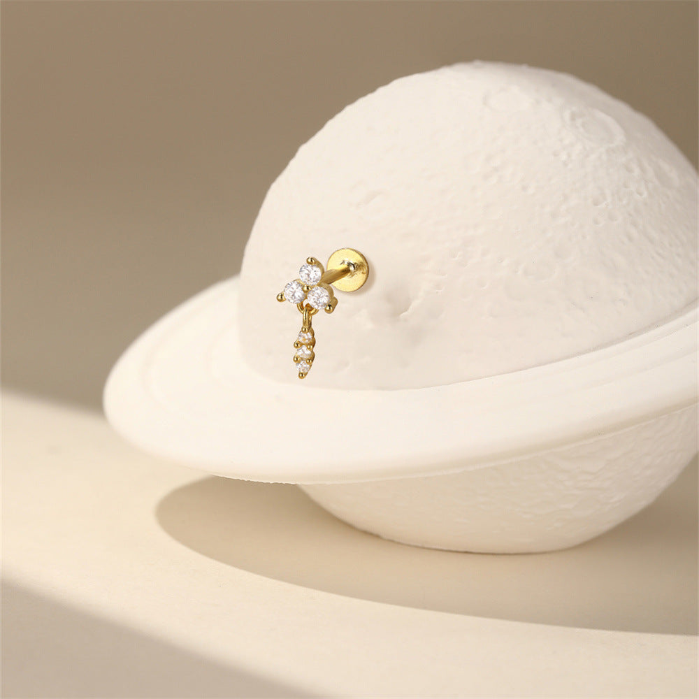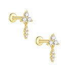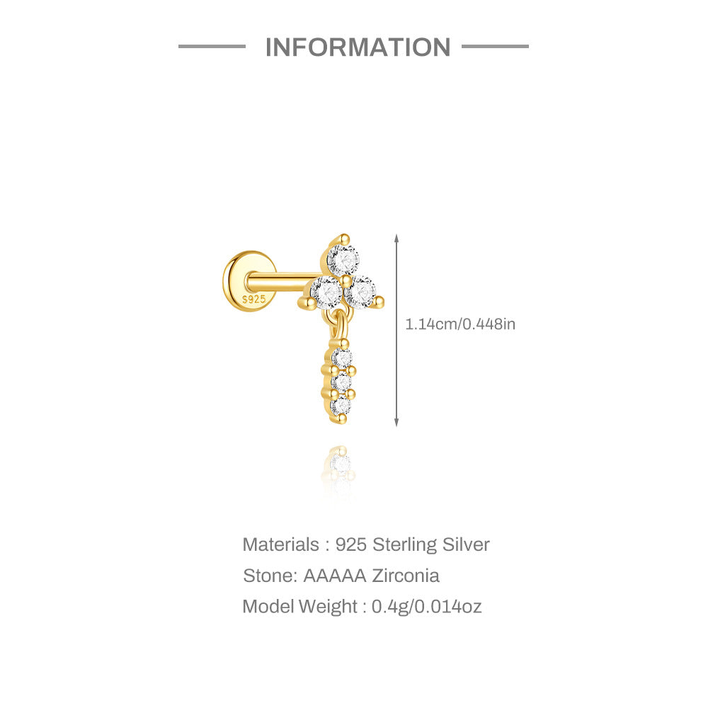 Artistic Irregular Zircon Flat Back Earrings 925 Sterling Silver Gold Plated Tassel Design