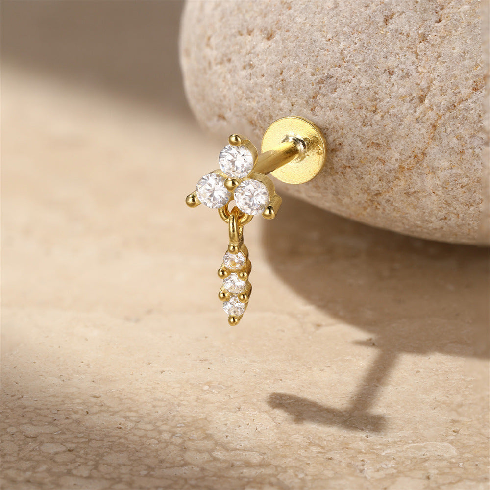 These distinctive earrings showcase an artistic irregular zircon design paired with an elegant tassel accent. Crafted from 925 sterling silver with luxurious gold plating, they deliver both durability and refined aesthetics. The flat back construction ensures comfortable, secure wear throughout the day. Perfect for those seeking statement pieces that blend contemporary artistry with timeless craftsmanship. An ideal choice for elevating any jewelry collection with sophisticated, eye-catching style.