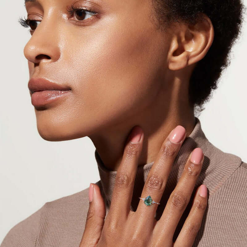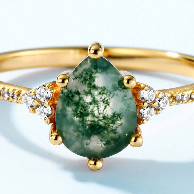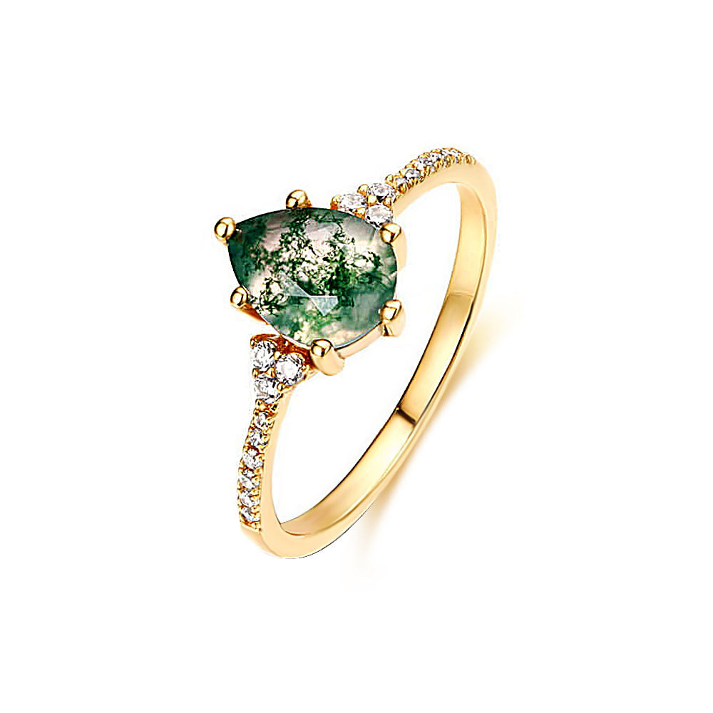 Moss agate ni aina ya agate na muundo wa asili unaotokea ambao unafanana na moses zinazoelea kwenye bwawa la mto, vyenye kupendeza na kupiga. Inakuja kwa kijani, zambarau na manjano. Tapi ndani ya nguvu ya maumbile na vifaa visivyo na mtindo wa mbele. Vaa pete ya moss agate ili kufungua uzuri wa ardhini na faini isiyokataliwa - na kuwaonyesha unamaanisha biashara.