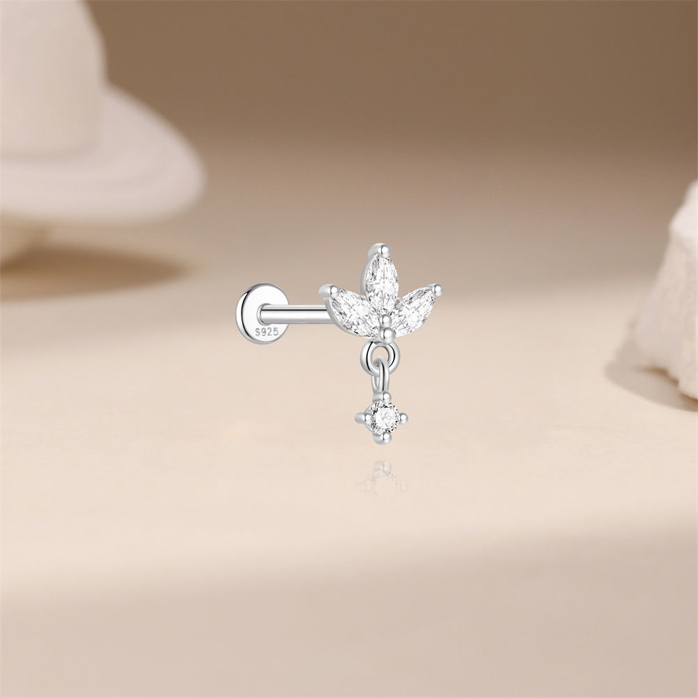 Clover Shaped Moissanite Flat Back Earring S925 Sterling Silver Niche Delicate Cartilage Jewelry