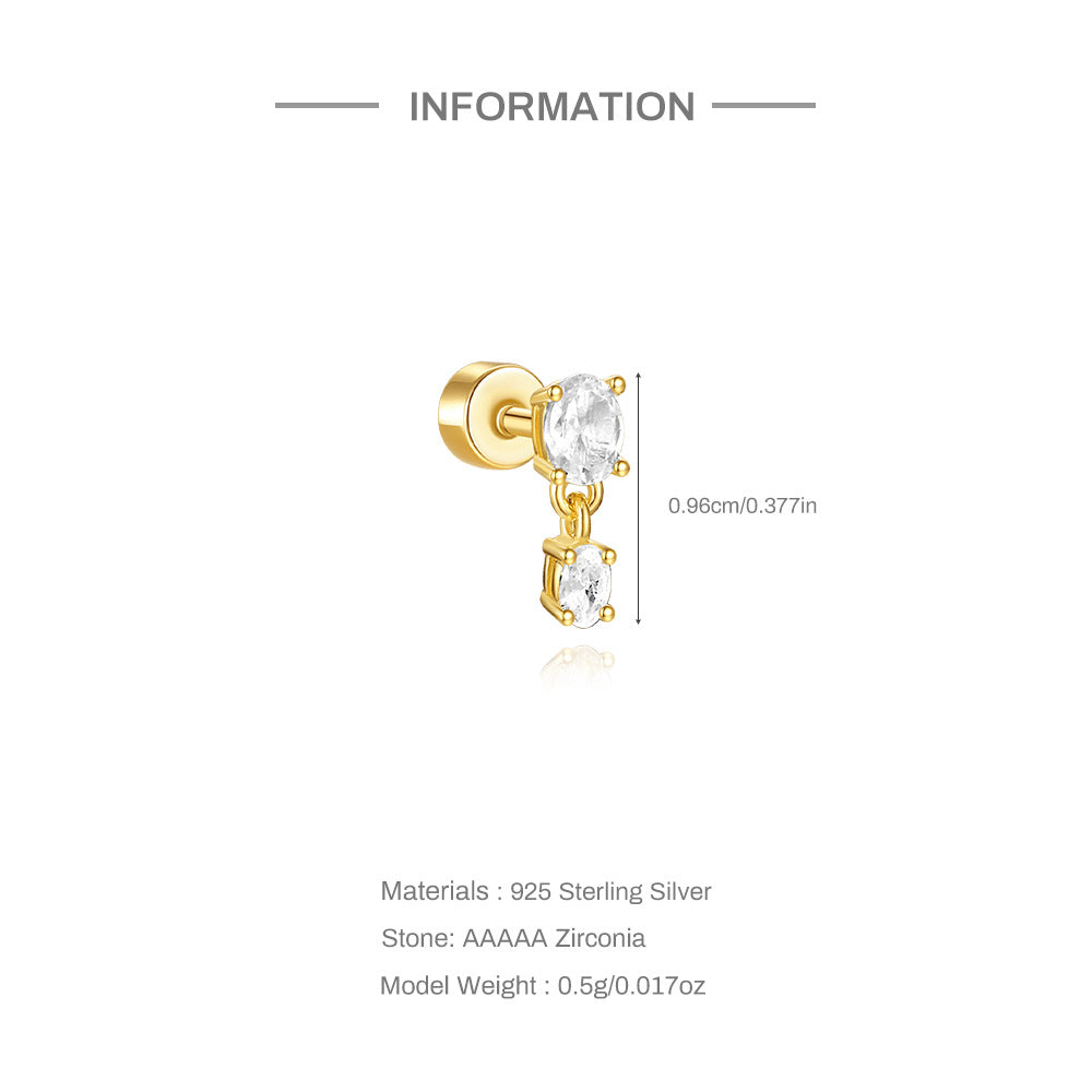 Unleash your daring side with these 925 silver earrings! The double round CZ diamonds bring a touch of sparkle to any outfit, while the flat back design ensures comfortable wear. Perfect for adding a bold touch to your style!