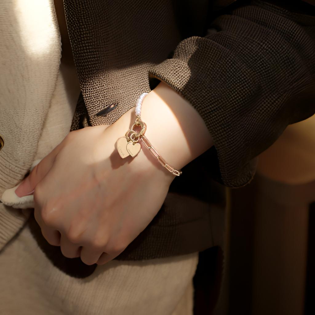 925 Silver Pearls Shop Personalized Heart Bracelets
